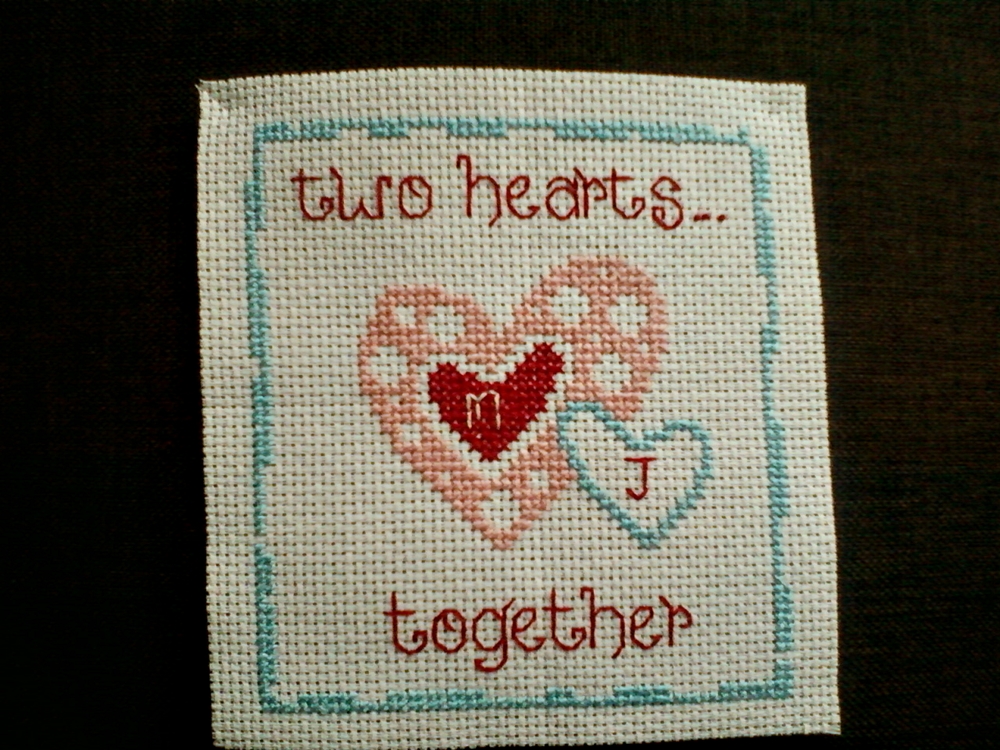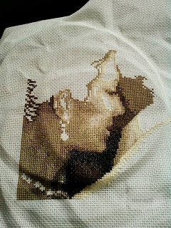 Po tygodniu prezentuję Wam jak idzie praca nad pamiątką ślubną Vervaco. Życie codzienne i niezaplanowane sprawy odrywały mnie od tego haftu i idzie mi powoli a chciałam do jutra skończyć... Haft nabiera kształtów, wczoraj musiałam szanownemu mężowi paluszkiem pokazywać zarys twarzy jaki widać i wtedy było takie: " aaaa, teraz to już widzę..." bo on to nigdy nic nie widzi co jest haftowane, dopiero jak haft skończony to widzi co jest "wyszyte". Mam nadzieję, że Wy macie więcej wyobraźni i widzicie co powstaje na mojej kanwie ;)