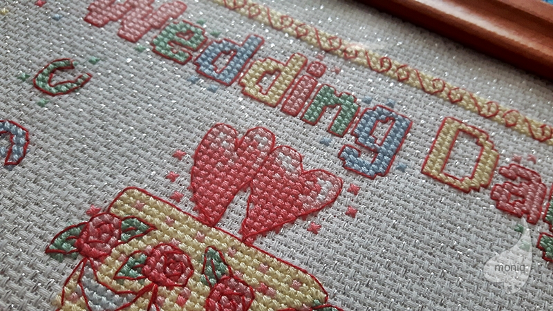 Jest to tort weselny, który zaczęłam haftować parę lat temu ale nie doczekał się finału. Wyjęłam go i ukończyłam w tym roku. Stanowi pamiątkę ślubu dla moich przyjaciół.